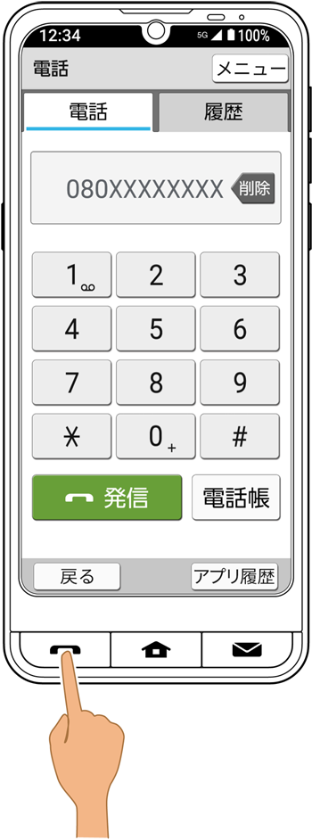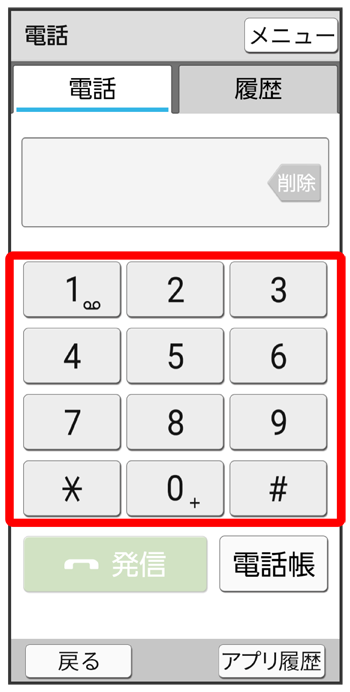 をタップして番号を消去し、正しい番号を入力し直してください。