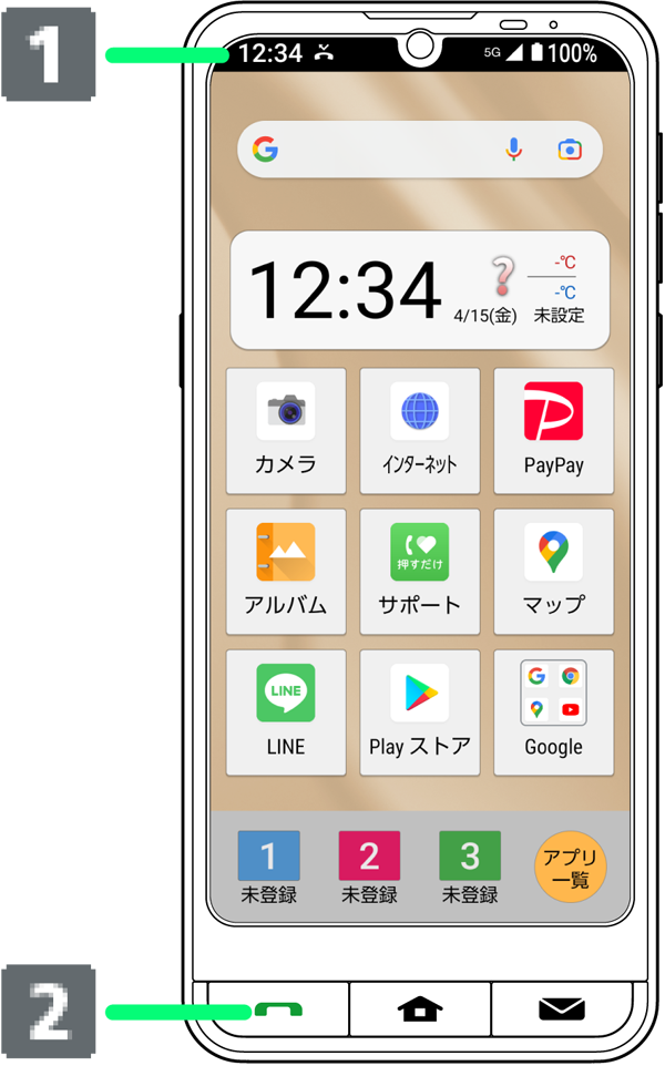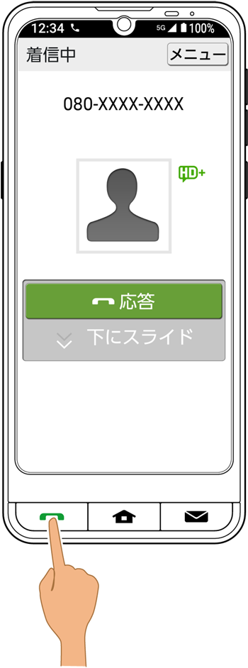 - を下にドラッグ(スライド)して、通話を開始することもできます(画面ロックを解除しているときは、をタップしてください)。