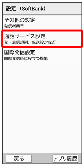 通話サービス設定画面が表示されます。