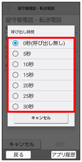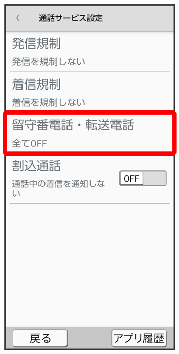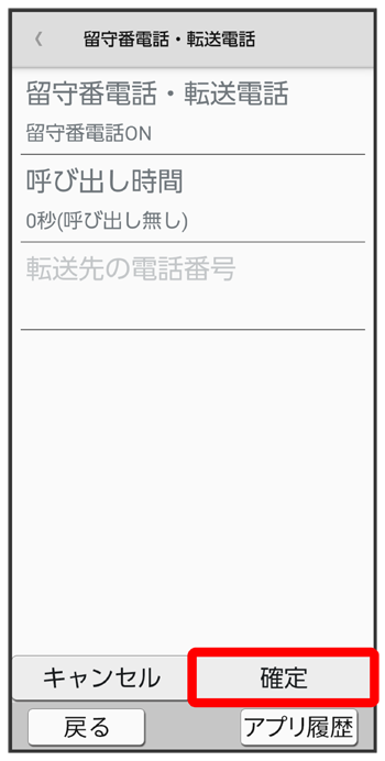 留守番電話・転送電話画面で
