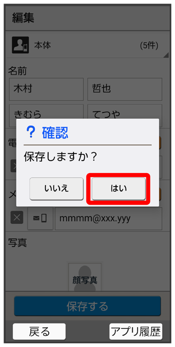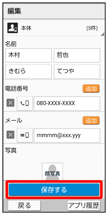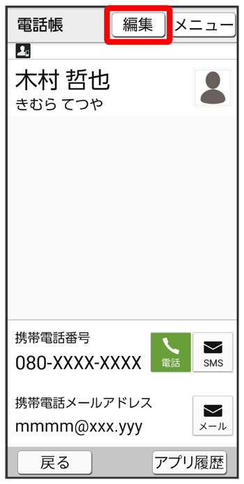 連絡先編集画面が表示されます。