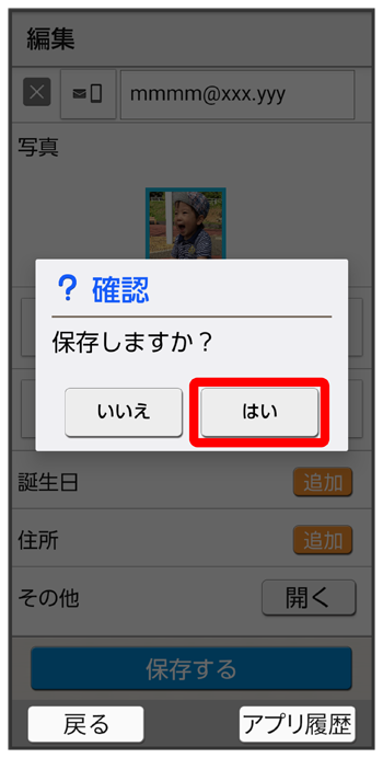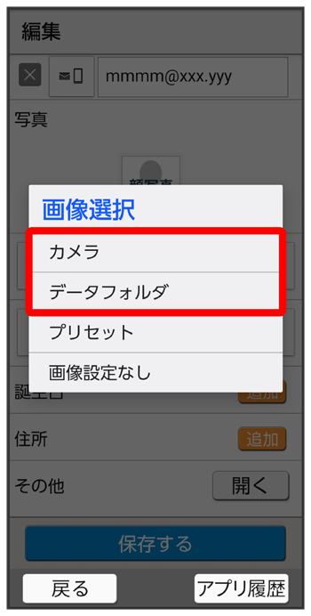 - をタップすると、カメラが起動します。撮って保存したあと、手順