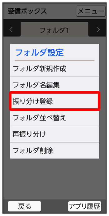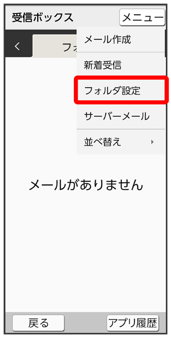 振り分け先のフォルダをタップメール一覧画面が表示されます。