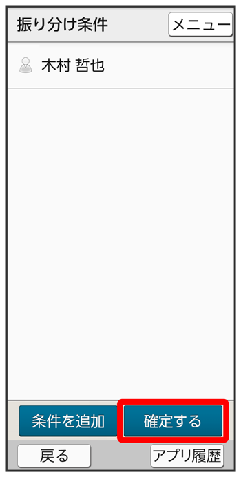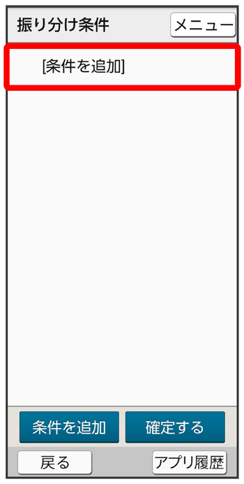 - 振り分け条件を削除するには、振り分け条件画面で削除したい条件をタップして、をタップします。以降は画面に従って操作してください。