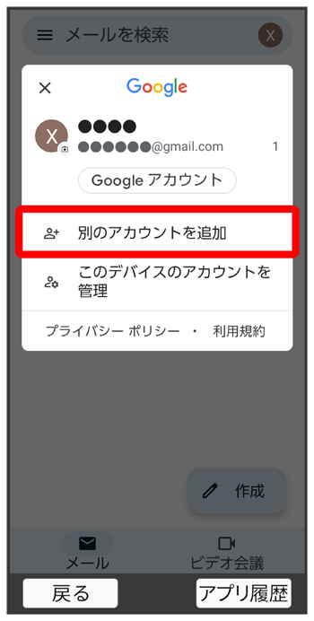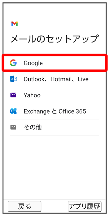 ここでは、Googleのメールアカウント追加を例に説明します。