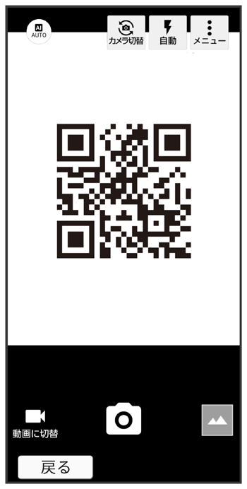 写真撮影画面に切り替える読み取るQRコード(バーコード)を画面に表示する
