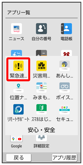 ホーム画面で緊急速報メールを利用するかどうかを設定する