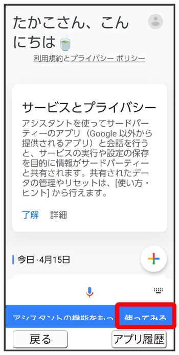 - 画面下に4色のバーが表示されているときに、声を認識します。
