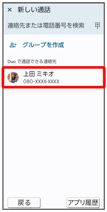 Duo画面が表示されます。