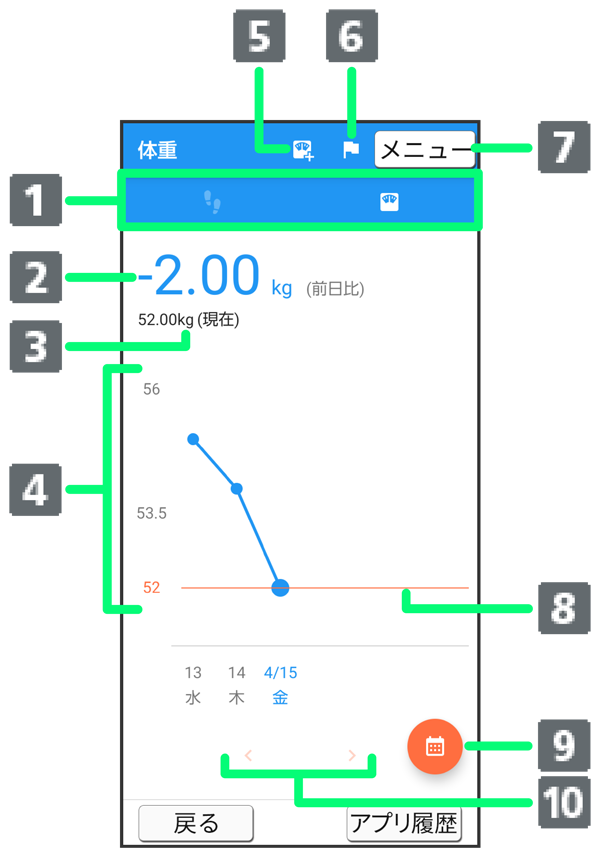 からだメイト画面で設定項目をタップ数値を設定/入力からだメイトの累積データをリセットする