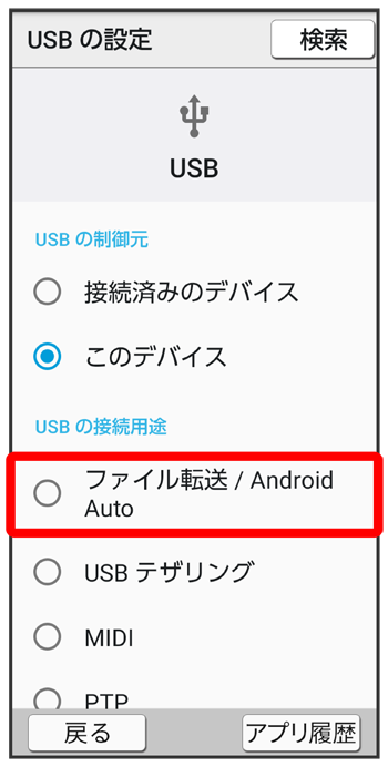 本機の内部ストレージ/SDカード内のデータをパソコンとやりとりする(MTPモード)