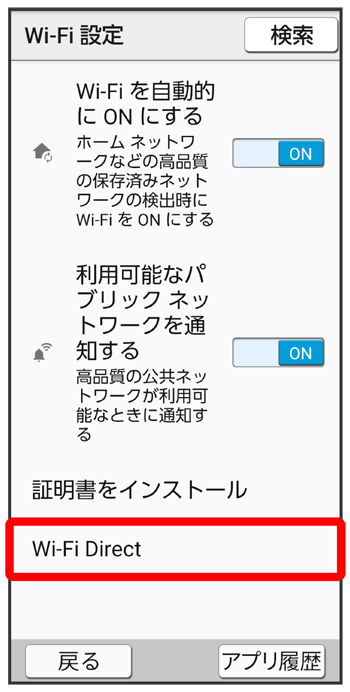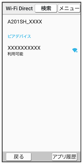 「ピアデバイス」欄に、近くにあるWi-Fi Direct規格対応機器が表示されます。