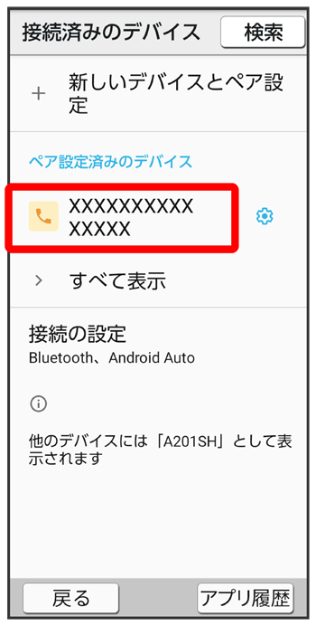 接続済みのデバイス画面で、ペア設定を解除する機器のこちらで検索できます