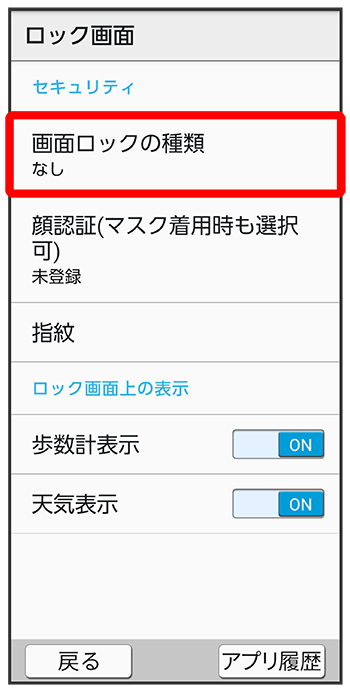 - 変更前の画面ロック解除方法がまたは以外のときは、設定が完了します。