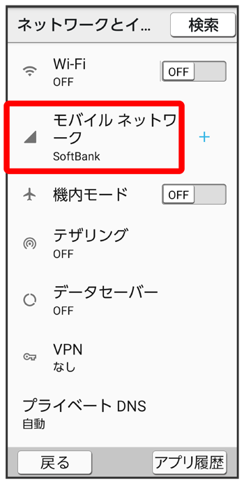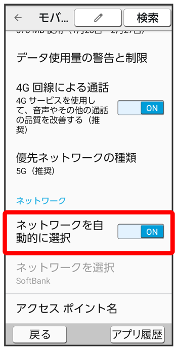 - 自動的に適切な通信事業者に接続するように設定するときは、再度、をタップします(