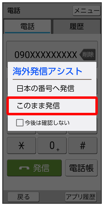 電話番号発信画面が表示されます。