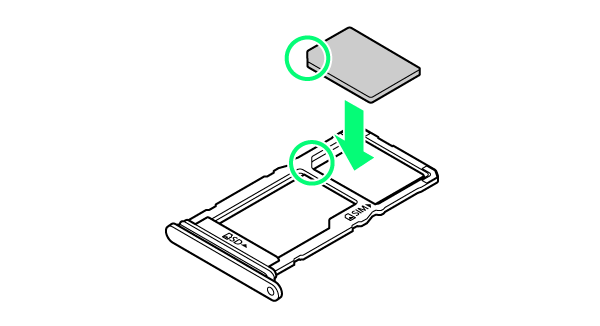 USIMカードのIC(金属)面を下にして、USIMカード/SDカードトレイに取り付ける
