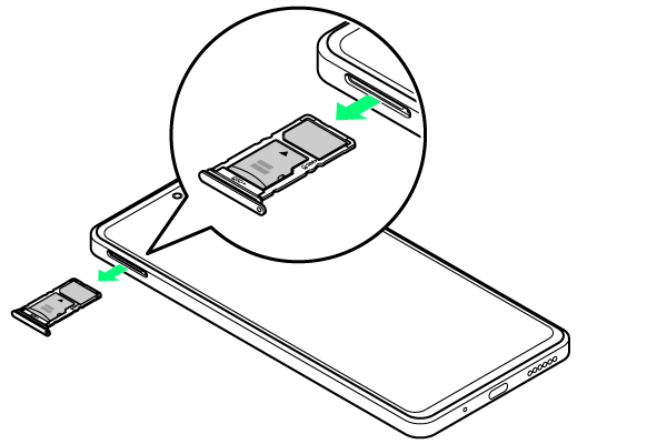 USIMカード/SDカードトレイをまっすぐに引き出し、本機から取り出す