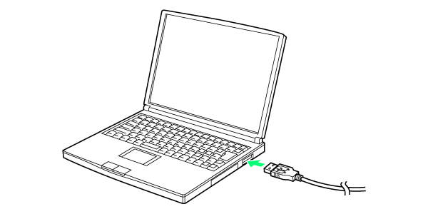 パソコンのUSB端子に、PC接続用USB Type-CケーブルのUSBプラグを差し込む