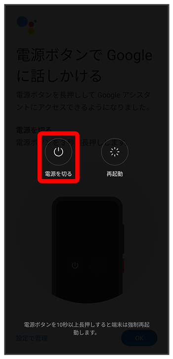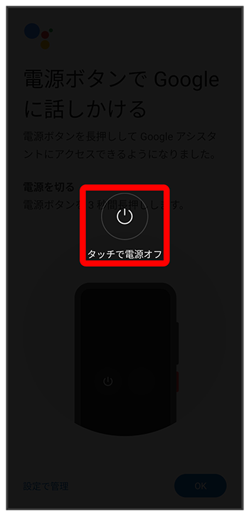 お買い上げ時は電源キーを長押しするとGoogleアシスタントが起動します。