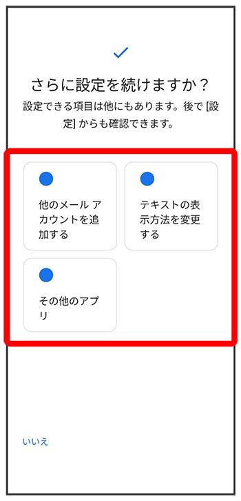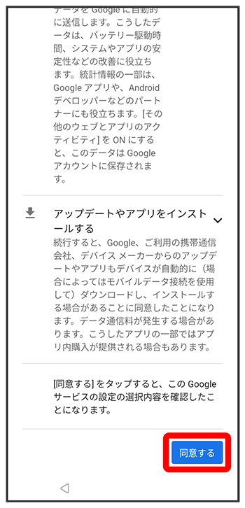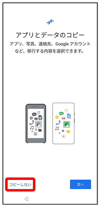 - をタップすると、Google アカウントを設定しているほかの端末からデータをコピーできます。画面の指示に従って操作してください。