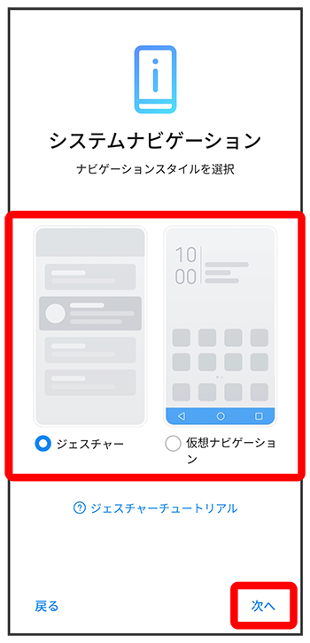 - 以降は「ジェスチャーナビゲーション」に設定した場合で説明します。