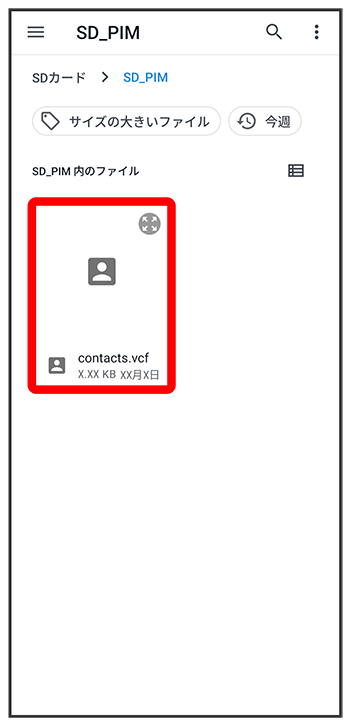 SDカードに保存(バックアップ)した電話帳データを読み込み(インポート)できます。