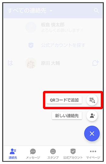 相手機器でQRコードを表示QRコードを画面中央に表示