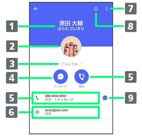 連絡先詳細画面の見かた