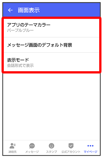 | メッセージ画面のデフォルト背景 | メッセージ画面の背景画像を設定できます。 |