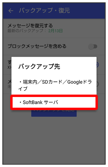 - SoftBankサーバ上に以前のバックアップデータがある場合は上書きされます。