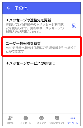 MNP(他社へのお乗り換え)先の事業者でも+メッセージを利用する場合、以下のユーザー情報を引き継ぐことができます。