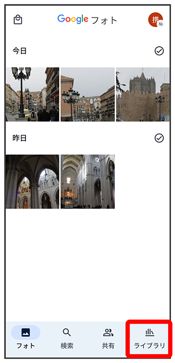 写真/動画一覧画面が表示されます。