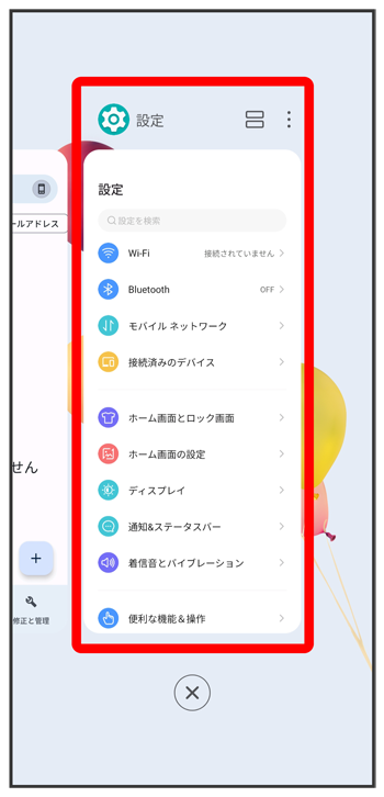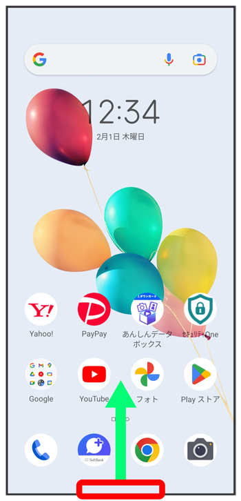 - 画面下部を右にフリック/スワイプすると、一つ前に使用していたアプリが表示されます。