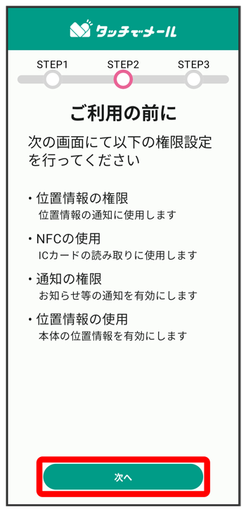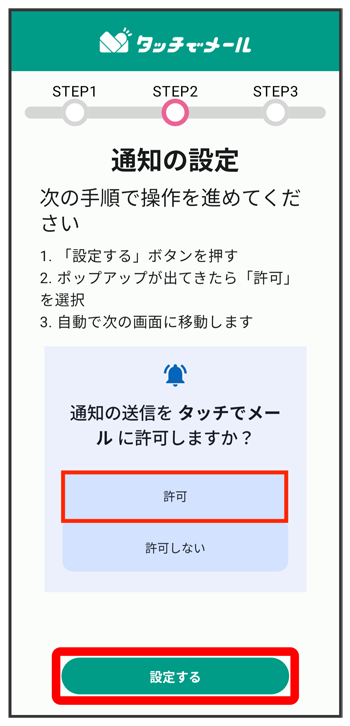 - 「通知の送信を タッチでメール に許可しますか?」が表示された場合は、をタップします。