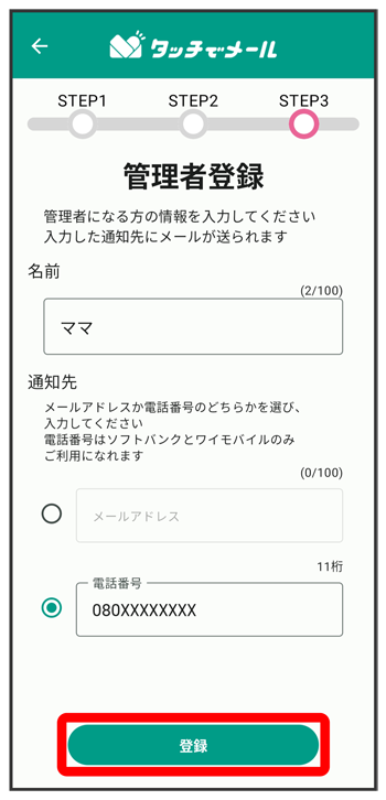 - 「連絡先へのアクセスを「タッチでメール」に許可しますか?」が表示された場合は、をタップします。