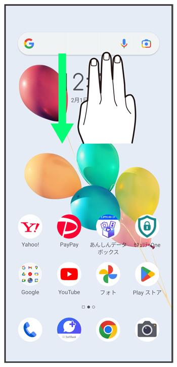 スクリーンショットを撮りたい画面で、3本指で下にスワイプする