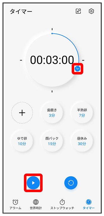 タイマー画面が表示されます。