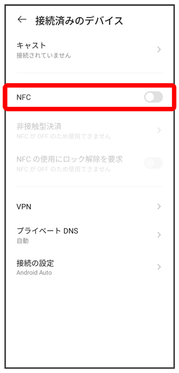 画面消灯(画面ロック)中はNFCの機能を無効にする