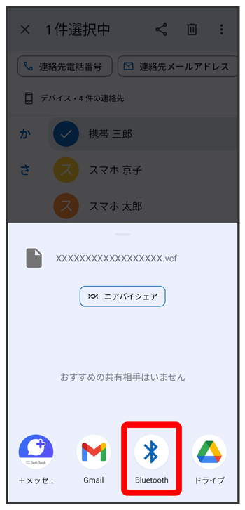 - 複数の連絡先を送信する場合は、送信する連絡先にチェックを入れます。
