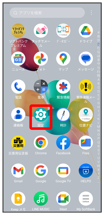 | モバイル ネットワーク | モバイルネットワーク、データ使用量など、ネットワークやインターネットに関する設定ができます。 |