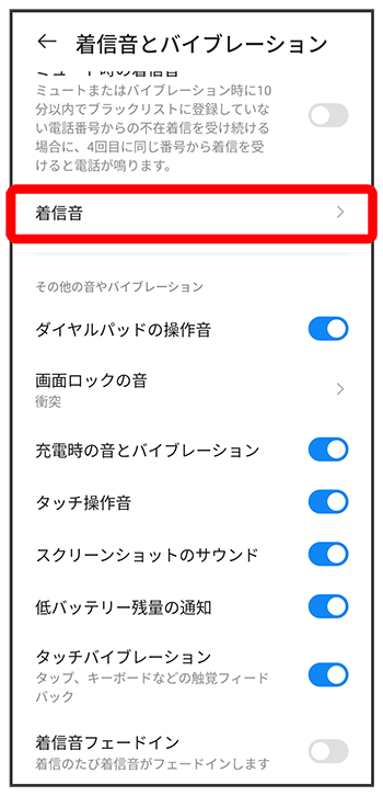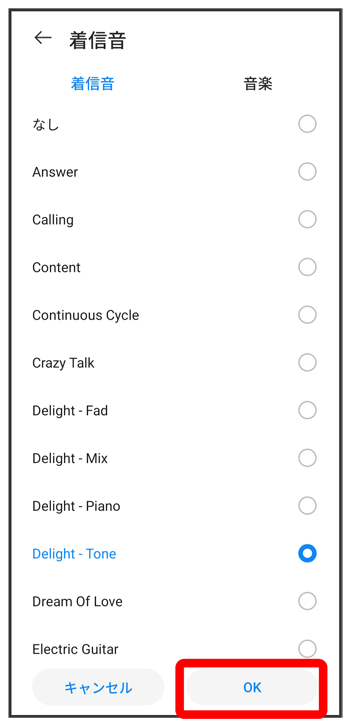 - をタップすると、着信音や通知音を音楽ファイルから設定することができます。
