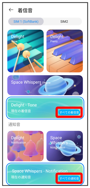 - SIMを2つ設定している場合はそれぞれに着信音を設定できます。