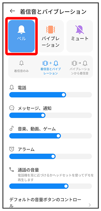 - をタップすると、着信音はオフになり、バイブレーションのみ動作します。