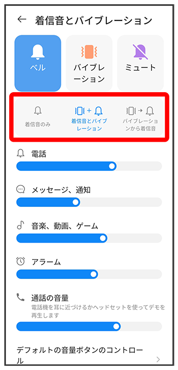 着信時にバイブレーションを動作させるかどうかを設定します。