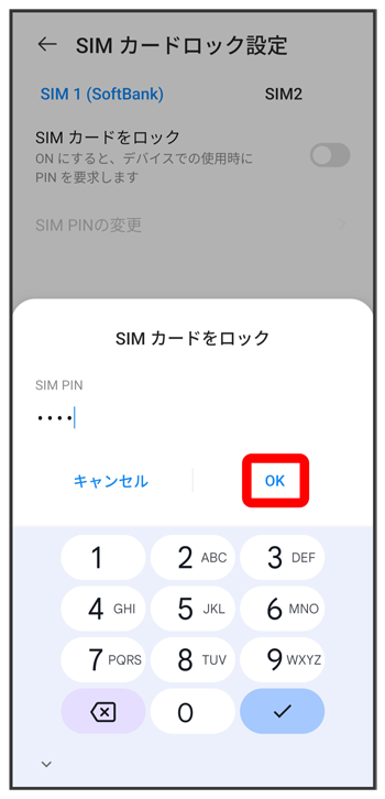 PINコードを有効にすることで、USIMカードを本機に取り付けた状態/eSIMが有効な状態で電源を入れたとき、PINコードを入力する画面を表示するように設定できます。