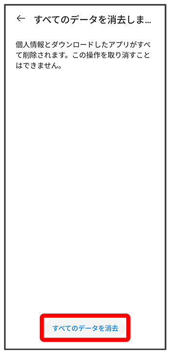 - 本機にSDカードを取り付けているとき、SDカードのデータも消去する場合は、をタップしてください(
