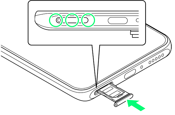 - ○部分をしっかりと押し、本体とSIMカードトレイにすき間がないことを確認してください。