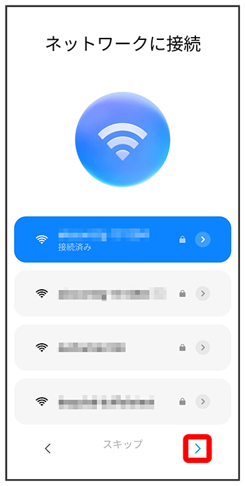 - Wi-Fiネットワークに接続しないときは、をタップします。以降は、画面の指示に従って操作してください。