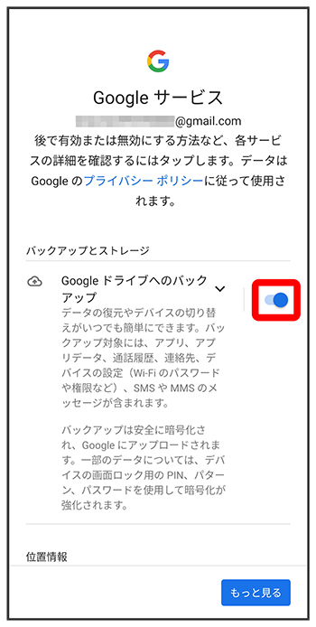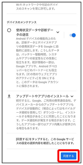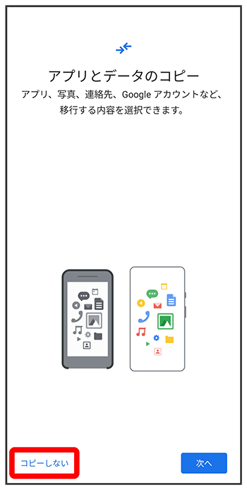- をタップすると、Google アカウントを設定しているほかの端末からデータをコピーできます。画面の指示に従って操作してください。